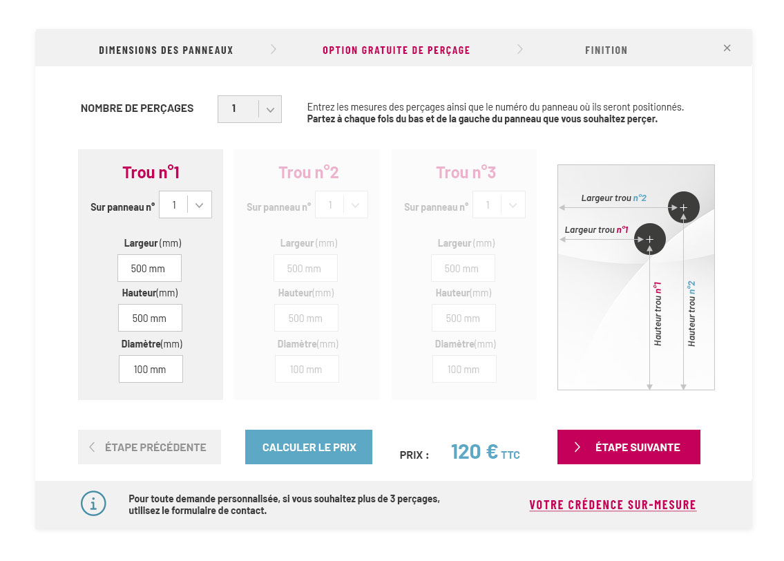 Indiquez la hauteur ainsi que la largeur de chaque panneau. Le prix total du produit se calculera automatiquement.